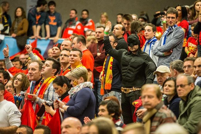 На вечерашниот натпревар можеше да се забележи голема бројка на наши навивачи во салата, кои беспрекорно го бодреа нашиот Вардар во големата победа над Рајн Некар Ловен. Тоа можевме да го видиме и слушнеме покрај ТВ екраните, но не можевме да го видиме Бетмен кој беше истотака со нашите навивачи и го бодреше нашиот Вардар :-)